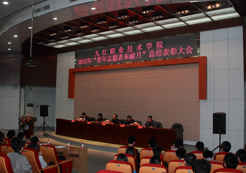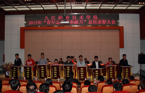 九江职院新闻网讯(校团委 叶枫)4月13日下午,我校在4号教学楼学术报告厅隆重举行2012年“青年志愿者奉献月”总结表彰大会,对雷锋月活动期间表现优秀的先进集体和个人进行了表彰。副院长刘南平出席大会并作重要讲话,党委组织部、宣传部、学工处、团委以及各院系部的负责人应邀出席大会,受表彰的集体和个人、学生志愿者代表近400人参加了大会。会议由校团委副书记周俊主持。