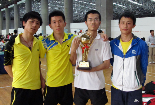 九江职院新闻网讯 (公共课部邓跃飞)在4月26日结束的2012年江西省“南昌理工学院杯”大学生羽毛球比赛中,我校代表队发扬了顽强拼搏的精神,勇夺专科组男子团体冠军、男子单打前四名、男子双打冠军和季军以及女子双打亚军的优异成绩。