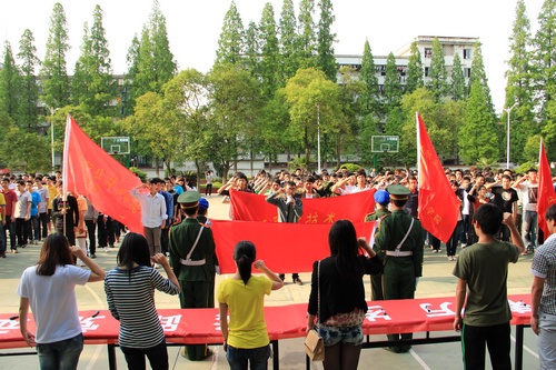 九江职院新闻网讯(校学生会记者部 于秉申)为纪念“五四”运动93周年和中国共青团建团90周年,弘扬爱国主义精神,保持团员的先进性,5月2日下午,校团委在一号篮球场举行了“青春万岁,紧跟党走”团员宣誓仪式。校团委副书记周俊、教师叶枫出席仪式,来自各院系近四百余名新老团员参加活动。