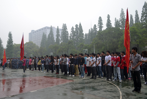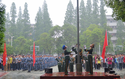 升旗仪式后,周俊带领大家回顾了93年前那场波澜壮阔的五四爱国运动,并结合当今形势特点,对广大团干和青年学子提出了要求和希望。他说,青春是绚丽的朝霞,在斑斓中飞扬;青春是烂漫的百花,在斗妍中绽放;青春的豪情只有在时代潮流中燃烧,才能汇聚成推动历史进步的强大力量。五四运动点燃了中华民族伟大复兴的曙光,我校广大青年学子只有积极继承与发扬五四运动光荣传统,才能唱响无愧于时代的青春之歌。他要求同学们坚定信念,刻苦学习,努力拼搏,勇于创新,早日成才,实现自己的人生价值,向祖国献礼,为国旗增辉。