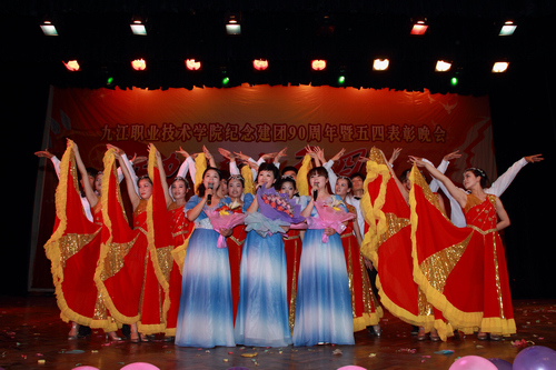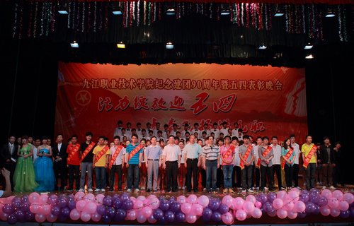 九江职院新闻网讯(校团委 叶枫)5月11日晚,我校纪念建团90周年暨五四表彰晚会在大礼堂隆重举行。校党委副书记曾凡龙,副院长魏东红、刘南平、彭晓兰、汪永根出席晚会并为“红旗团支部”、“共青团之星”、“优秀共青团干部”、“优秀共青团员”等先进集体和个人颁奖,学校各中层部门、各院系部负责人、老师和1000余名同学共同观看了晚会。