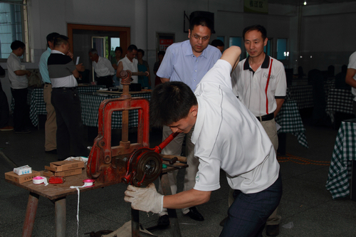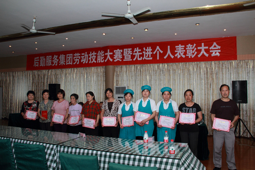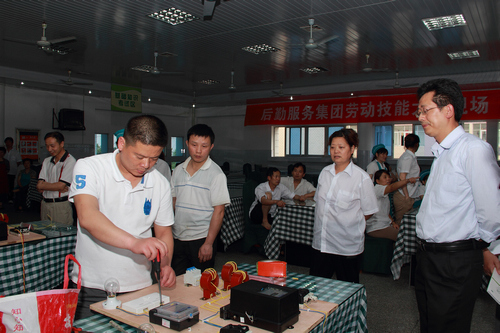 九江职院新闻网讯 (后勤服务集团)5月18日下午,后勤集团职工劳动技能大赛暨“2011—2012年度”外聘员工先进个人表彰大会在集团餐饮中心职院酒楼举行。学校党委副书记曾凡龙到场观看了比赛。