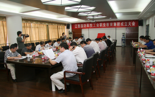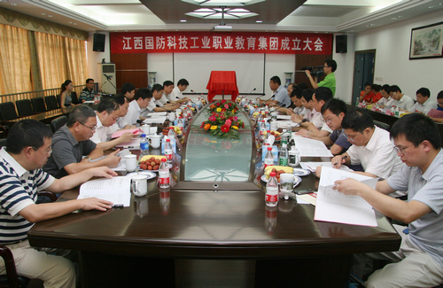 教育厅高教处胡永红处长宣读了关于江西国防科技工业职业教育集团成立批复;受职教集团筹备工作领导小组委托,汪副院长向与会领导和代表报告了江西国防科技工业职业教育集团筹备工作情况。