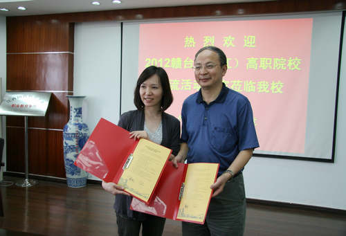 会谈期间,双方就开展文化、教育、科技领域的交流与合作,教师、科研人员、学生之间的交流互访等进行了友好的协商。魏院长代表学校与台湾中州科技大学、亚太创意技术学院签署了合作协议。
