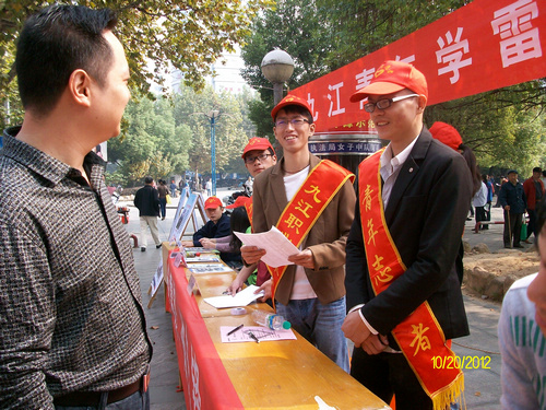九江职院新闻网讯(校团委)10月20日上午,由团市委主办的“青年学雷锋广场”活动在烟水亭举行。我校青年志愿者爱心维修服务队参加了此次活动。