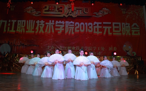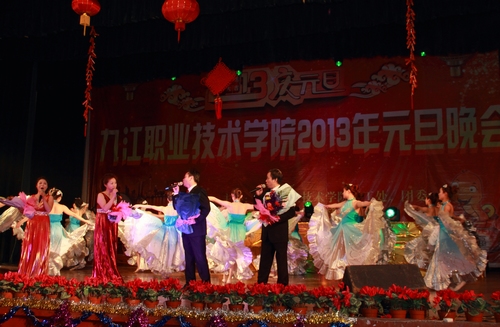 九江职院新闻网讯(学工处 团委)12月30日晚,我校隆重举行2013年元旦文艺晚会,在岁末年初之际为广大师生献上了一场精彩的文艺盛宴。院长魏寒柏博士,副院长魏东红、刘南平、汪永根莅临晚会现场,与全校1200多名师生一同观看晚会,欢聚岁末,喜迎新年。