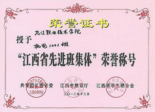 九江职院新闻网讯(机械工程学院 杨珍子)近日,共青团江西省委、江西省教育厅、江西省学生联合会联合下发了《关于表彰江西省大中专院校三好学生、优秀学生干部、先进班集体的决定》文件,表彰了一批先进集体和先进个人。机械工程学院机电1001班被被授予2012年度“江西省先进班集体”称号。