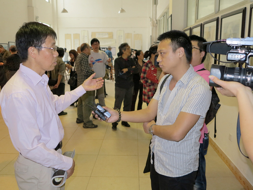 开幕式上,九江画院原副院长饶国安老师介绍了李海林老师的艺术人生与成果,书法家崔廷遥先生为本次“艺术之恋”画展挥毫题词,刘南平副院长与市文化新闻出版局局长柯亨龙先生共同为本次画展揭幕。