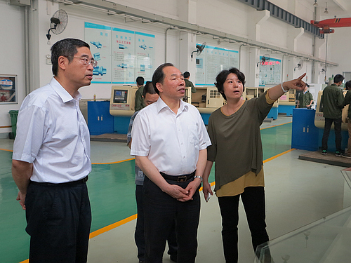 在检测实训基地精密测试实训室,高岭老师正带着学生做实训,由于在企业多年的工作经验,高岭老师的课很受学生欢迎。近年来,学校努力打造“双师型”教学团队,很多老师既是教师,又是工程师,大大提高了学生的学习兴趣和动手能力。了解这一情况后,程样国十分高兴,他说,要很好地实现工学结合,离不开一支优秀的“双师型”教学团队,学校在这方面做得很好。在电气实训基地,程样国看到,实训室里既有黑板,又有桌椅,还有操作台,同学们在这里可以边学习理论知识,边进行实践操作。他说,在学中做,在做中学,学做一体,这样培养出来的学生动手能力强、上岗适应快,是非常好的教学模式,值得推广。程样国十分关注学校校企合作的情况,在工业工程中心,当他看到很多实训基地门口都挂上了西门子、昌河等知名企业的名字时,他说,校企合作办学一直在提,但如何让合作更加深入,调动企业的积极性,真正实现校企双赢是我们要解决的问题,九江职业技术学院在这方面有了不少的突破,希望学校继续努力和探索。