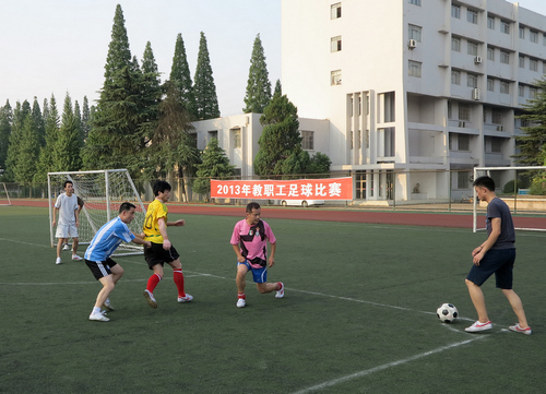 足球比赛以分会为单位举行,共有8支球队参赛,分为A、B两个小组。决赛中,公共课部分会队以1比0战胜机关分会联队获得冠军,学生工作分会队和船舶工程学院分会队并列第三。