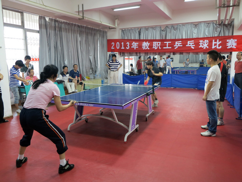 乒乓球比赛采取团体赛制,以分会为单位组队或联合分会组队,每队包括领队1名,男队员4名,女队员2-4名,比赛环节和出场顺序为混合双打、男子单打、女子单打、男子双打、女子双打。经过激烈比拼,行政、思政分会联队获得冠军,机械工程学院分会队位列第二,经济管理学院分会队和党群、工程训练中心、中职与继续教育学院分会联队并列第三。