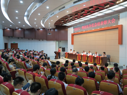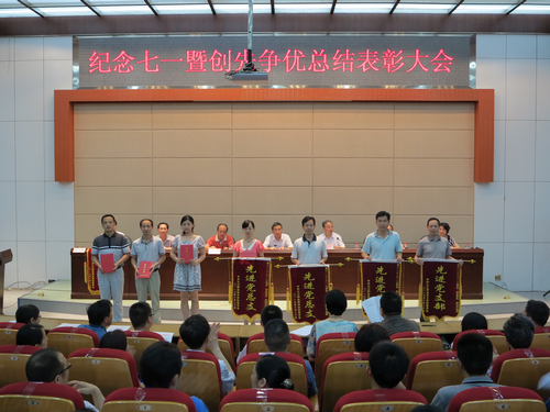 九江职院新闻网讯(党委组织部 李晓明)6月25日,我校在4号教学楼学术厅召开了纪念“七一”暨创先争优总结表彰大会。全体中层干部、全体教师党员、部分学生党员共350余人参加了大会。会议由院长魏寒柏博士主持。