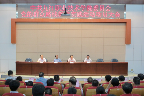 九江职院新闻网讯(党委组织部)我校党的群众路线教育实践活动动员大会于7月11日下午15:00在四号学术厅召开,省委第十五督导组组长省政协提案委副主任陈智祥、副组长江西教育学院原党委委员、副院长毛秋云、督导组成员省民政厅人事教育处副处长方利鹏、省勤工俭学办公室副主任徐炜、省委组织部干部综合处副主任科员刘磊、省纪委(监察厅)驻省粮食局纪检组(监察室)副主任科员万谦,及校党委书记张威,党委副书记、院长魏寒柏博士,党委副书记、纪委书记曾凡龙,党委委员、副院长魏东红、刘南平、彭晓兰、汪永根出席了会议。我校中层干部、正高职称人员,部分“两代表一委员”和党员干部群众代表参加了会议。