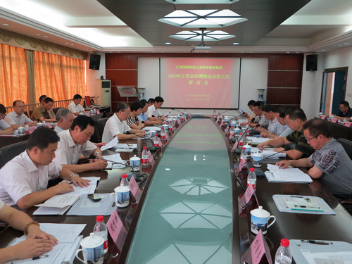 九江职院新闻网讯(院长办公室)7月14日,江西国防科技工业职业教育集团2013年工作会议暨校企合作工作研讨会在我校隆重召开,集团理事长、九江职业技术学院院长魏寒柏博士出席会议并讲话,省教育体制改革领导小组办公室王锋处长应邀参加会议并作了题为《漫谈高等职业教育集团化办学》的报告。会议由集团秘书长、九江职业技术学院副院长彭晓兰主持。