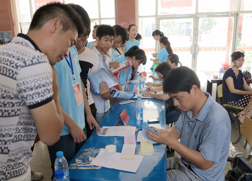 火车站、校门口、新生报到处、交费处、校园主干道,处处可以看得到志愿者们繁忙的身影。每一名新生注册入学,志愿者们都是全程“陪同”,这让新生对这个自己即将学习生活几年的“新家”充满了期待。